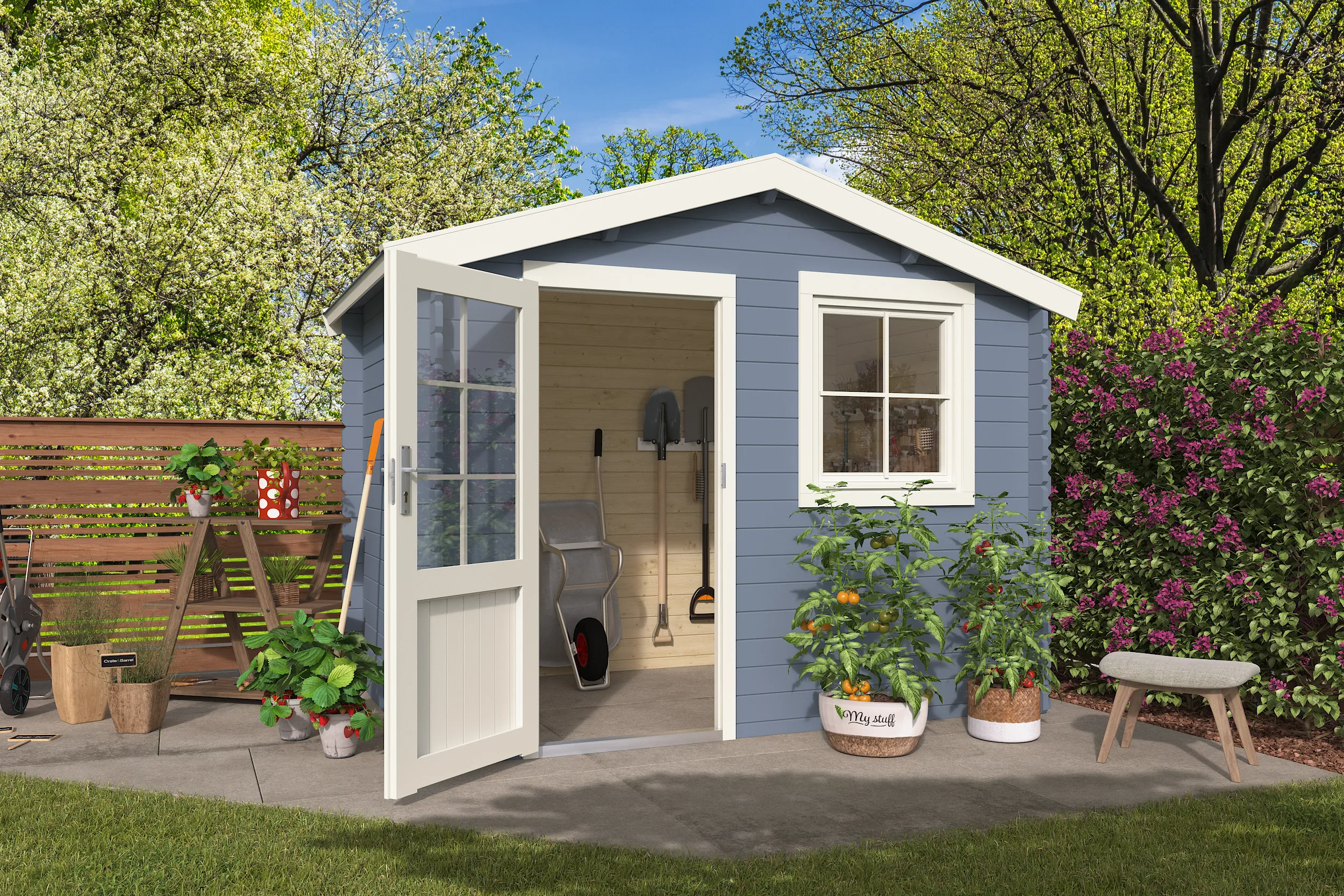 Vrtna kućica Nina drvena je kućica klasičnog izgleda koja savršeno odgovara manjim gradskim vrtovima kao i okućnicama. Model ima poluostakljena jednostruka vrata i jedan prozor na prednjoj strani koji pušta svjetlo u prostoriju. Idealan dodatni objekt za korištenje na različite načine. Tradicionalni nordijski stil izrade osigurava strukturu koja se lako sastavlja i iznimno je čvrsta, a ne koristi vijke ili čavle u zidnoj konstrukciji. Također ima spojeve kutova kako bi se dobio dodatni spoj drva za izuzetno dobru otpornost na vremenske uvjete.