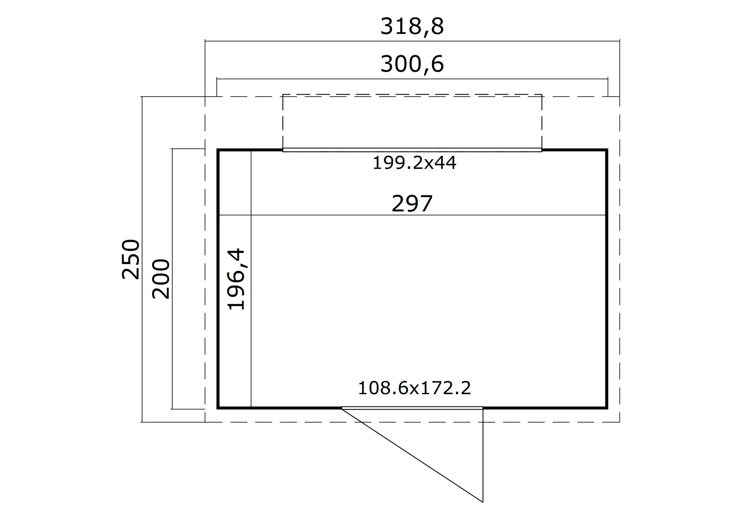 • Vanjske dimenzije zidova: cca 300,6 × 200 cm